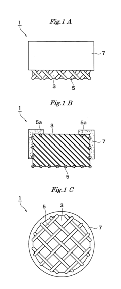 Compliant metal mesh structures are widely used in electronic devices where flexibility and conformability are required. Applications include touch sensors, flexible displays, electromagnetic interference (EMI) shielding, and stretchable electronics. The mesh's ability to maintain electrical conductivity while undergoing deformation makes it particularly valuable for wearable technology and curved display surfaces.Expand Specific Solutions05 Testing and characterization of metal mesh compliance