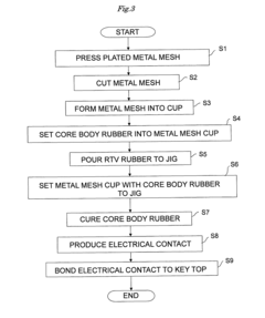 Various manufacturing processes can be employed to produce metal mesh with specific compliance characteristics. These techniques include etching, weaving, knitting, and advanced deposition methods. The manufacturing approach significantly influences the mesh's mechanical properties, with parameters such as annealing temperature, material selection, and post-processing treatments affecting the final compliance behavior of the metal mesh structure.Expand Specific Solutions04 Applications of compliant metal mesh in electronic devices