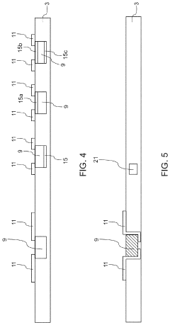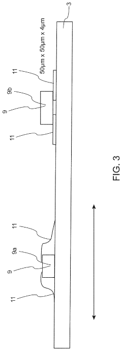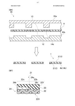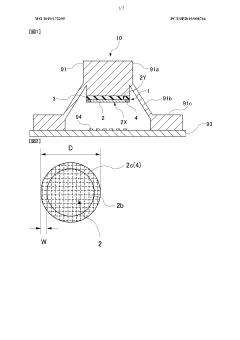 Current technical objectives for metal mesh technology center on several key parameters: achieving sheet resistance below 10 Ω/sq while maintaining optical transparency above 90%, developing manufacturing processes compatible with roll-to-roll production for cost reduction, and ensuring long-term reliability under mechanical stress and environmental exposure. Additionally, there is significant focus on developing metal mesh structures that can withstand repeated bending cycles (>200,000 cycles at 1mm radius) without performance degradation, critical for flexible and foldable device applications.