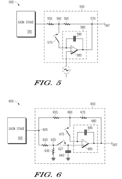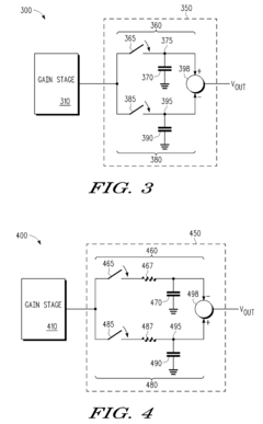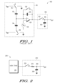 - Incorporating passive or active filtered-sampling stages with resistive and capacitive elements to attenuate noise, using switches and subtractors to isolate and subtract noise components from the desired signal, thereby reducing noise in the output.