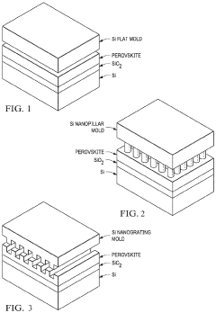 - A method involving nanoimprinting of organometal halide perovskite thin films using a mold with increasing pressure and temperature, resulting in imprinted patterns like nanogratings or nanoholes, which enhances crystallinity and optoelectronic properties by improving charge carrier transport and photon absorption.
