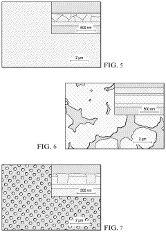 - Hybrid and Advanced Deposition Techniques for Perovskite Catalysts: Hybrid and advanced deposition techniques combine multiple methods or incorporate novel approaches for depositing perovskite catalyst thin films. These include inkjet printing, aerosol-assisted deposition, flame spray pyrolysis, and molecular beam epitaxy. These advanced techniques offer unique advantages such as digital patterning, rapid processing, and precise control over film microstructure. They enable the fabrication of complex perovskite catalyst architectures with tailored properties for specific catalytic applications, including hierarchical structures and gradient compositions.