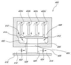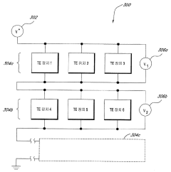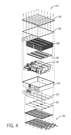 Technical Solution: Gentherm has developed the "Adaptive Thermal Interface System" (ATIS) specifically designed for electric vehicle battery thermal management. Their approach focuses on dynamic interface materials that respond to changing thermal conditions. The core technology utilizes a proprietary composite material with temperature-dependent thermal conductivity that increases from 2 W/m·K at low temperatures to over 8 W/m·K during high-load conditions, ensuring efficient heat transfer precisely when needed. Gentherm's system incorporates a network of micro-thermistors embedded within interface materials that provide real-time temperature mapping with resolution of 5mm across battery surfaces. This data feeds into their predictive thermal management algorithms that can anticipate hotspot formation before critical temperatures are reached. Their interface engineering extends to the cooling plate design, which features variable-thickness channels that distribute coolant flow proportionally to heat generation patterns across the battery pack. Gentherm has also pioneered electrically conductive thermal interfaces that serve dual purposes as both thermal pathways and as part of the battery pack's electrical architecture, reducing overall system complexity and weight by eliminating redundant components.