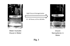 - Nanoparticles composed of water-insoluble glucans are produced through high-pressure homogenization and surfactant stabilization processes, allowing for the formation of clear, flexible films and potential applications in various industries.
