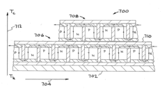 Thermoelectric systems designed for recovering waste heat from industrial processes such as manufacturing, power generation, and chemical production. These applications focus on capturing high-temperature waste heat streams from industrial equipment and converting them into usable electricity. The systems include specialized heat exchangers, thermal interface materials, and power conditioning electronics tailored for industrial environments.Expand Specific Solutions04 Novel thermoelectric materials and structures
