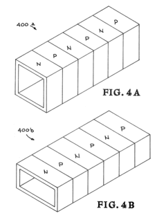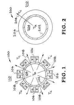 Technical Solution: Mitsubishi Heavy Industries has developed industrial-scale thermoelectric waste heat recovery systems designed to operate within increasingly stringent emissions and efficiency regulations. Their technology focuses on high-temperature applications in power generation and industrial processes, utilizing advanced skutterudite and half-Heusler thermoelectric materials that maintain stability and performance at temperatures exceeding 500°C. MHI's modular system architecture allows for scalable implementation across different industrial applications while maintaining regulatory compliance through integrated emissions monitoring and control systems. Their approach includes specialized heat transfer interfaces that maximize thermal conductivity while minimizing mechanical stress on thermoelectric elements during thermal cycling. MHI has implemented these systems in several power plants in Japan and Southeast Asia, demonstrating net electrical generation increases of 1-3% without affecting primary emissions control systems. The company's regulatory compliance framework includes continuous monitoring capabilities that adjust system parameters to maintain operation within permitted limits across varying load conditions.