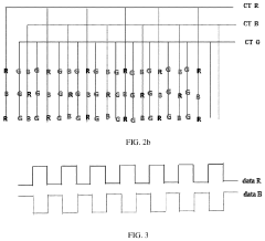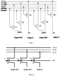 Compensation techniques are employed to address issues such as non-uniformity, aging, and temperature-related variations in AMOLED displays. These methods may involve real-time monitoring of pixel characteristics, applying correction factors, or implementing adaptive algorithms to maintain consistent display performance over time.Expand Specific Solutions