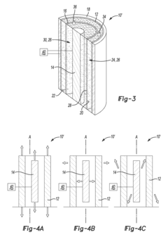 Electrolytic cells find applications in various industries, including chemical production, metal refining, and energy storage. Specialized cell designs have been developed for specific applications, such as chlor-alkali production, water electrolysis for hydrogen generation, or electroplating. These designs may incorporate unique features like gas diffusion electrodes, bipolar membranes, or flow-through configurations to enhance performance for their intended use.Expand Specific Solutions