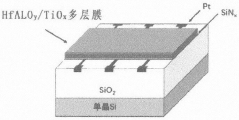 - A highly consistent HfAlOy/TiOx multilayer neuron device array was designed by constructing a Pt lower electrode, aluminum contacts embedded in silicon nitride and a HfAlOy/TiOx multilayer resistive layer on a silicon substrate, and using The oxygen vacancy channel in the multi-layer structure controls the resistance change and avoids crosstalk.