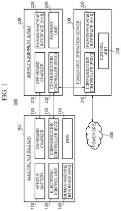 Vehicle-to-Grid (V2G) technology requires compliance with various regulatory frameworks before implementation. These include obtaining necessary permits, adhering to grid connection standards, and meeting safety certifications. Regulatory bodies may require specific licensing for entities operating V2G systems, particularly regarding electricity trading and grid interaction capabilities. Compliance documentation must be maintained and updated as regulations evolve.- Regulatory compliance for V2G technology: Vehicle-to-Grid technology requires compliance with various regulatory frameworks and licensing requirements before implementation. These regulations ensure the safe and standardized operation of V2G systems across different jurisdictions. Compliance involves meeting technical standards, grid connection protocols, and obtaining necessary permits from energy regulatory bodies. The licensing process typically includes certification of equipment, verification of safety measures, and adherence to local electrical codes.