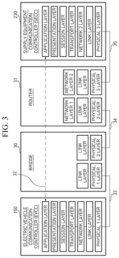 Technical Solution: Ford has developed the "BlueOval V2G Licensing Navigator," a comprehensive solution designed to help vehicle-to-grid providers navigate the complex licensing landscape. Their approach focuses on creating standardized technical packages that meet or exceed regulatory requirements across multiple jurisdictions. The system includes a proprietary compliance assessment tool that evaluates V2G hardware and software against current regulations in target markets, identifying gaps and providing remediation pathways. Ford's framework incorporates a "Regulatory Requirements Database" that tracks licensing requirements across all 50 U.S. states and major international markets, updated quarterly to reflect changing regulations. Their approach emphasizes vehicle-side certification, leveraging Ford's established relationships with utility regulators to create pre-approved vehicle configurations that simplify the licensing process for V2G providers using Ford vehicles. The company has also developed standardized testing protocols for bidirectional charging equipment that align with both automotive safety standards and utility interconnection requirements, addressing a key regulatory gap in many jurisdictions. Ford has successfully implemented this framework through pilot programs with utilities in California, Michigan, and the UK, demonstrating its adaptability across different regulatory environments.