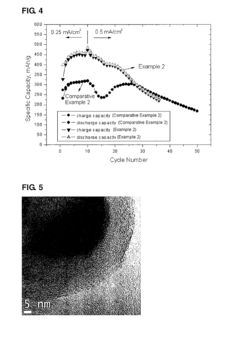 Protective nanocoatings can be applied to battery components to enhance durability and safety. These nanometer-thick layers provide barriers against moisture, oxygen, and contaminants while improving mechanical stability. Specialized nanocoatings can also offer self-healing properties, flame retardancy, and enhanced electrical insulation. The implementation of these coatings extends battery lifespan, improves safety characteristics, and enables operation in more demanding environments.Expand Specific Solutions05 Nano-engineered structural components