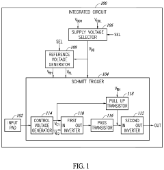 Supply voltage scaling represents another effective approach for improving power efficiency in Schmitt trigger circuits. By operating at reduced voltage levels while maintaining functional hysteresis windows, significant power savings can be achieved. Studies indicate that carefully designed low-voltage Schmitt triggers can operate reliably at sub-1V levels while preserving adequate noise margins for data transfer applications.