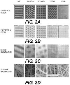 Technical Solution: MIT has pioneered advanced electrospinning techniques for biomedical applications, focusing on tissue engineering scaffolds and drug delivery systems. Their proprietary coaxial electrospinning process enables the creation of core-shell nanofibers with controlled release properties for pharmaceutical applications[1]. MIT researchers have developed a portable electrospinning device that operates at low voltages (under 5kV compared to traditional 15-30kV systems), making the technology more accessible for point-of-care medical applications[3]. Their recent innovation combines electrospinning with microfluidic systems to produce highly aligned nanofiber structures with precise control over fiber diameter (50-500nm) and orientation, critical for neural tissue engineering applications[5]. MIT has also commercialized electrospun membranes for water filtration that demonstrate 95% higher flux rates while maintaining filtration efficiency compared to conventional membranes.