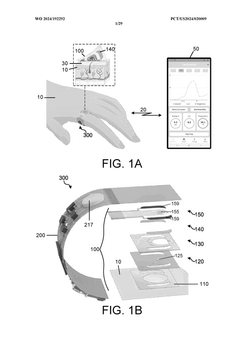 Technical Solution: Verily (formerly Google Life Sciences) has developed a significant patent portfolio around next-generation wearable biosensors. Their patents focus on miniaturized, multi-modal sensing platforms that can continuously monitor multiple biomarkers simultaneously. A cornerstone of their technology is the development of smart contact lenses with integrated biosensors for measuring glucose levels in tears[1], though this project faced technical challenges and was paused. Verily has patented novel microfluidic systems for wearable devices that can sample and analyze interstitial fluid without traditional needles. Their Study Watch platform incorporates electrocardiogram, electrodermal activity, and photoplethysmography sensors with advanced signal processing algorithms protected by multiple patents[3]. Verily's patent portfolio also includes technologies for passive physiological monitoring through everyday objects like smart bathroom fixtures and furniture, enabling health monitoring without dedicated wearable devices. Recent patents focus on machine learning approaches to extract clinically relevant insights from continuous biosensor data streams.
