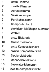 - A method using double flame spray pyrolysis to synthesize battery active materials and carbon additives directly onto an electrically conductive substrate in a two-step process, eliminating the need for prefabricated materials, binders, and solvents, while allowing for flexible production of composite layers with controlled porosity and properties.