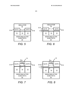 Gate-related failures are common in GaN power devices, including gate leakage current increase, threshold voltage shifts, and dielectric breakdown. These failures can occur due to high electric fields, charge trapping at interfaces, or material defects in the gate stack. Over time, these mechanisms lead to degraded switching performance, increased power losses, and eventual device failure. Improved gate dielectric materials and optimized gate structures are being developed to enhance reliability and prevent premature breakdown.Expand Specific Solutions03 Current collapse and dynamic RON degradation