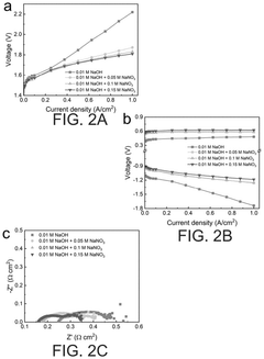 The field performance of AEM electrolyzers is significantly affected by environmental and operational conditions. Factors such as ambient temperature, humidity, water quality, and power supply fluctuations can impact efficiency and durability. Benchmarking studies evaluate how these electrolyzers perform across different geographical locations and climate conditions, providing data on adaptability and resilience. Performance standards often include metrics for operation under non-ideal conditions to reflect real-world deployment scenarios.Expand Specific Solutions05 Cost-performance ratio and economic benchmarks