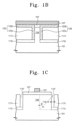 Advanced gate architectures such as gate-all-around (GAA) and multi-gate structures improve gate material efficiency by enhancing electrostatic control over the channel. These designs provide better short channel effect immunity and allow for more efficient use of gate materials by increasing the effective gate area. The three-dimensional nature of these structures enables more efficient carrier transport and improved subthreshold characteristics, resulting in higher performance at lower operating voltages.Expand Specific Solutions04 Gate stack engineering and interface optimization