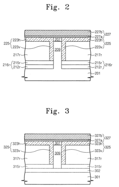 Gate stack engineering focuses on optimizing the interfaces between different materials in the gate structure to improve efficiency. This includes the use of interface layers, barrier metals, and capping layers to reduce defects and prevent unwanted diffusion. Techniques such as nitrogen incorporation, thermal treatments, and precise deposition methods are employed to minimize interface states and enhance carrier mobility. These optimizations lead to improved reliability, reduced threshold voltage variation, and better overall gate efficiency.Expand Specific Solutions05 Advanced manufacturing processes for gate formation