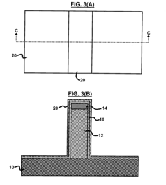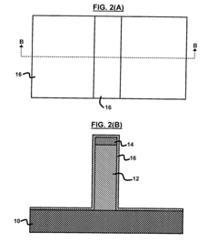 Innovative manufacturing processes enhance FinFET gate material efficiency through precise control of dimensions and material properties. These include atomic layer deposition for uniform high-k dielectrics, selective etching techniques for gate patterning, and replacement metal gate processes that allow separate optimization of the gate dielectric and electrode. Self-aligned gate formation methods reduce parasitic capacitance and resistance, while stress engineering techniques improve carrier mobility. These advanced processes enable the fabrication of high-performance FinFETs with optimized gate structures.Expand Specific Solutions