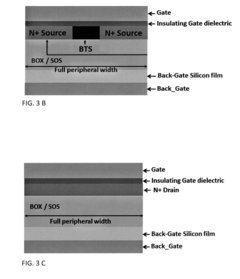 Fully Depleted Silicon-On-Insulator (FD-SOI) technology provides significant power efficiency benefits through its ultra-thin silicon layer on an insulator substrate. This architecture reduces parasitic capacitances and junction leakage, enabling lower power consumption while maintaining high performance. FD-SOI allows for effective body biasing techniques that can dynamically optimize the power-performance trade-off, making it particularly suitable for applications requiring both high speed and energy efficiency. The technology's inherent radiation hardness also makes it valuable for specialized high-reliability applications.Expand Specific Solutions03 Comparative performance analysis between FinFET and FD-SOI