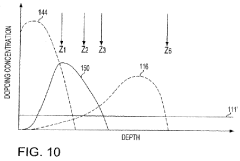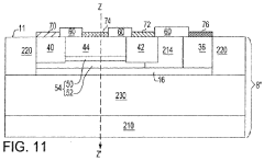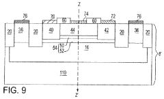 Technical Solution: IBM has pioneered significant advancements in FinFET technology with their "Gate-All-Around" (GAA) evolution that addresses drain current limitations. Their research demonstrates that while traditional JFETs offer simplicity in fabrication, their planar structure limits drain current potential due to poor electrostatic control. IBM's FinFET implementation features fins with heights of 30-50nm and widths below 10nm, creating an effective channel that maximizes drain current per unit area. Their latest FinFET designs incorporate strain engineering and high-mobility channel materials that enhance carrier transport, resulting in up to 40% improvement in drain current compared to conventional silicon channels. IBM has further developed nanosheet transistor technology (an evolution of FinFET) that provides even better drain current characteristics by allowing width adjustments without increasing footprint. Their comparative analysis shows FinFETs delivering 2-3x higher transconductance than JFETs at equivalent gate lengths, directly translating to superior drain current potential.