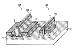 Nanowire transistors represent the next evolution beyond FinFETs for continued scaling. The gate-all-around architecture provides superior electrostatic control by surrounding the channel completely, enabling effective scaling to smaller dimensions. Nanowire designs can incorporate multiple stacked channels to increase current drive while maintaining a small footprint. This architecture significantly reduces short-channel effects and allows for continued scaling beyond what is possible with FinFET technology.Expand Specific Solutions03 Fabrication techniques for scalable transistor structures