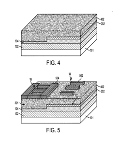 Advanced fabrication methods are crucial for scaling both FinFET and nanowire transistors. These include selective epitaxial growth for channel formation, atomic layer deposition for uniform gate dielectric coverage, and self-aligned processes to minimize variability. Novel etching techniques enable the creation of high-aspect-ratio fins and suspended nanowire channels. These fabrication approaches address critical dimensional control challenges that arise when scaling to smaller nodes.Expand Specific Solutions04 Materials innovation for transistor scaling
