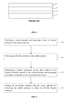 Current innovation objectives in flexible display substrate technology center around several critical areas. First is the development of ultra-thin substrate materials with enhanced mechanical properties that can withstand thousands of folding cycles without degradation. Second is the creation of transparent barrier layers that effectively prevent moisture and oxygen penetration while maintaining flexibility. Third is the advancement of adhesive technologies that maintain integrity across temperature fluctuations and mechanical stress.