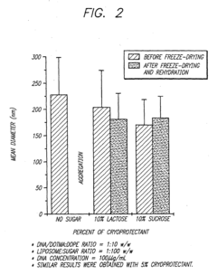 Technical Solution: AbbVie has developed a multi-component stabilization system called CellShield™ for room-temperature preservation of cell therapies. Their approach combines specialized disaccharide formulations (primarily trehalose and sucrose) with proprietary cell-penetrating peptides that facilitate intracellular delivery of cryoprotectants. The technology incorporates a carefully balanced mixture of antioxidants and free radical scavengers that prevent oxidative damage during storage. AbbVie's formulation includes specific amino acid combinations that maintain protein structure and function during dehydration and rehydration processes. Their lyophilization protocol employs controlled nucleation technology to ensure uniform ice crystal formation, resulting in consistent product quality. The company has also developed specialized primary packaging with moisture-resistant barriers and oxygen scavengers to maintain optimal storage conditions. Clinical studies have demonstrated preservation of T-cell functionality after room-temperature storage for up to 2 weeks using this technology, representing a significant advancement for CAR-T therapy logistics.