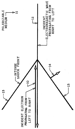 - The method involves scattering coherent electromagnetic waves from moving charged particles in a polarizable medium, utilizing lasers or similar sources, to produce frequency-shifted, highly directional radiation with controlled frequency and wavenumber selection, and modulation, achieving stimulated electromagnetic shock radiation with narrow-band and high spatial directionality.