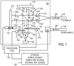 Recent advancements in FTIR spectroscopy hardware focus on improving sensitivity, resolution, and reliability. These innovations include enhanced detectors, more stable interferometers, and miniaturized components that enable portable applications. Hardware improvements allow for faster scanning speeds, higher signal-to-noise ratios, and greater accuracy in spectral measurements across various sample types.- Advanced FTIR hardware improvements: Recent advancements in FTIR spectroscopy hardware focus on improving sensitivity, resolution, and reliability. These innovations include enhanced detectors, more stable interferometers, and miniaturized components that enable portable applications. Hardware improvements also address issues of thermal stability and vibration resistance, allowing for more accurate measurements in various environmental conditions.