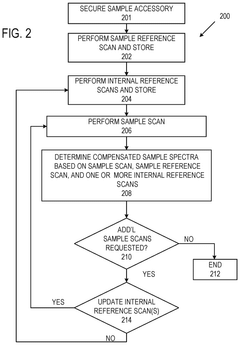 Specialized software tools have been developed to enhance FTIR data interpretation and analysis. These tools incorporate advanced algorithms for spectral processing, peak identification, baseline correction, and multivariate analysis. Machine learning and artificial intelligence approaches are increasingly being integrated to automate spectral interpretation, improve pattern recognition, and enable more sophisticated quantitative analysis of complex mixtures.Expand Specific Solutions03 Sample preparation and handling innovations
