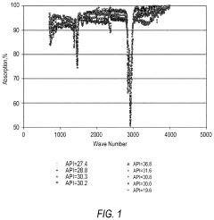 - Employing Fourier Transform Infrared Spectroscopy (FTIR) analysis to directly assess the indicative properties of crude oil fractions without fractionation, using a system that calculates these properties based on density and FTIR measurements, enabling rapid evaluation of crude oil quality.