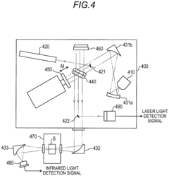 - Advanced instrumentation and measurement systems: Advanced instrumentation for FTIR and Resonance Raman spectroscopy incorporates sophisticated optical components, detectors, and data processing systems to enhance spectral resolution and sensitivity. Modern systems often integrate laser sources, interferometers, spectrometers, and specialized detectors optimized for specific wavelength ranges. These instruments may feature automated sample handling, real-time analysis capabilities, and miniaturized designs for portable applications. Innovations in instrumentation focus on improving signal-to-noise ratios, reducing acquisition times, and enhancing the ability to detect and analyze complex spectral lines.