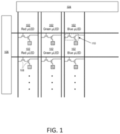 MicroLED technology offers exceptional durability with longer lifespans than OLED displays, showing minimal degradation over time. Both technologies demonstrate improved resistance to environmental factors compared to traditional displays, with MicroLEDs particularly excelling in harsh conditions. These displays maintain performance across wider temperature ranges and show greater resistance to humidity. Additionally, the manufacturing processes for newer generations of these technologies are becoming more environmentally friendly, with reduced use of harmful chemicals and improved recyclability of components.Expand Specific Solutions05 Integration capabilities and specialized applications