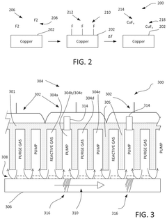 - A semiconductor manufacturing apparatus with discrete open chambers is used to smooth copper surfaces on large substrates, employing reactive plasma or ionic gases to form volatile compounds that are then vaporized and removed, followed by purging, to achieve atomic-level smoothness of copper contact pads, enabling effective bonding between micro-LED elements and the display backplane.