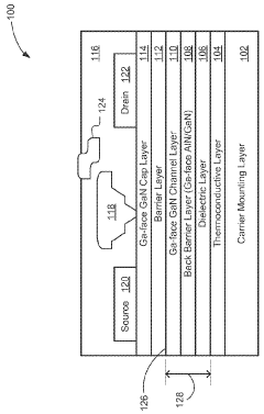 Holistic approaches to thermal management incorporate thermal considerations directly into the device design process. This includes optimizing device geometry, gate spacing, and active region layout to minimize thermal resistance pathways. Advanced simulation tools are used to model heat flow and identify potential hotspots before fabrication. Channel engineering techniques, such as recessed gate structures and field plates, help distribute heat more evenly across the device. Additionally, novel materials such as graphene interlayers are being explored to enhance lateral heat spreading within the device structure.Expand Specific Solutions