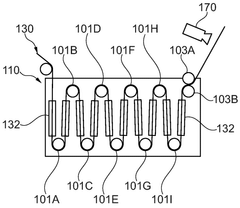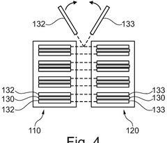 Technical Solution: Samsung SDI has developed advanced in-situ gas evolution analysis techniques for Prussian White (PW) cells, utilizing differential electrochemical mass spectrometry (DEMS) to monitor gas generation during cycling. Their approach combines real-time gas analysis with electrochemical impedance spectroscopy to correlate gas evolution with SEI formation mechanisms. Samsung's research has identified that the decomposition of electrolyte solvents (primarily carbonates) at the electrode-electrolyte interface is a major source of gas evolution in PW cells. They've engineered electrolyte additives containing fluorinated compounds that form more stable SEI layers, reducing gas generation by approximately 40% compared to conventional electrolytes. Their proprietary electrolyte formulations incorporate film-forming additives that passivate reactive sites on the Prussian White structure, minimizing side reactions that lead to CO2 and H2 evolution during cycling.