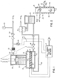Gas evolution in Prussian White cells occurs during charging and discharging cycles, affecting battery performance and safety. This phenomenon is primarily caused by side reactions involving electrolyte decomposition and electrode material degradation. The evolution of gases such as hydrogen, oxygen, and carbon dioxide can lead to pressure buildup within the cell, potentially causing mechanical stress and capacity fading. Understanding these mechanisms is crucial for developing strategies to mitigate gas generation and improve the long-term stability of Prussian White-based energy storage systems.- Gas evolution mechanisms in Prussian White cells: Gas evolution in Prussian White cells occurs during charging and discharging cycles, primarily due to electrolyte decomposition at extreme potentials. This process can lead to pressure build-up within the cell, affecting its performance and safety. The gas evolution is often associated with side reactions involving water molecules and can be influenced by the operating temperature and current density. Understanding these mechanisms is crucial for developing strategies to mitigate gas generation and improve cell longevity.