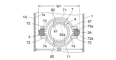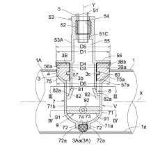- A gate valve device with an elastic seal member sandwiched between metal side plates, utilizing an operation conversion mechanism to reduce the rubber lining volume and enhance fluid shut-off performance by clamping and compressing the seal member against the pipe inner wall, combined with an auxiliary pressure contact mechanism to improve sealing at the side surface.