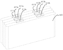 Technical Solution: LG Chem has developed an integrated grid connection solution for second-life batteries called "Reborn Energy Storage System" (RESS). This system addresses the heterogeneity challenge of SLBs through a sophisticated cell sorting and matching process prior to grid integration. Their approach employs a multi-string architecture with independent DC-DC converters for each battery string, allowing dynamic reconfiguration based on real-time performance metrics. The RESS incorporates advanced state estimation algorithms that account for accelerated aging characteristics of second-life batteries, providing more accurate state-of-charge and state-of-health information to grid operators. LG Chem's solution features a proprietary grid synchronization method that maintains stable operation even with batteries exhibiting significant capacity fade. The system includes a comprehensive thermal management solution designed specifically for the altered thermal characteristics of aged cells, preventing hotspot formation that could lead to thermal runaway events. LG Chem has implemented this technology in several pilot projects, including a 1MW/2MWh installation supporting renewable integration at a solar farm in South Korea.