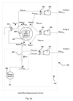 Advanced signal processing methods are crucial for enhancing Hall sensor signal stability. These include digital filtering algorithms, noise reduction circuits, signal amplification with low drift characteristics, and compensation for offset errors. Implementation of these techniques helps eliminate unwanted signal components and ensures stable, accurate sensor output even in noisy environments.Expand Specific Solutions04 Sensor structure and packaging innovations