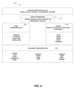 Technical Solution: IBM has developed a comprehensive Hardware Abstraction Layer framework for modular robotics through their IBM Automation platform and Watson IoT services. Their HAL architecture implements a microservices-based approach where hardware components are abstracted as containerized services with standardized APIs, enabling flexible deployment across diverse robotic platforms. The framework employs a multi-tiered architecture with hardware-specific adapters at the lowest level, a middleware layer for resource management and orchestration, and high-level interfaces for application development. IBM's implementation leverages their expertise in cloud computing to create a distributed HAL that can span edge devices and cloud infrastructure, enabling sophisticated workload distribution and scalability. Their HAL includes advanced features such as automated discovery and configuration of robotic components, real-time monitoring and analytics, and AI-driven predictive maintenance capabilities. The architecture supports secure communication between components through enterprise-grade encryption and authentication mechanisms.