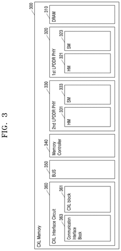 Various techniques are employed to optimize bandwidth utilization in HBM4 systems integrated with CXL. These include intelligent data prefetching, compression algorithms, and prioritized memory access scheduling. Advanced memory controllers dynamically adjust bandwidth allocation based on application requirements, reducing bottlenecks and improving throughput. These optimization techniques ensure efficient utilization of the high bandwidth capabilities of HBM4 memory while minimizing latency in memory-intensive operations.Expand Specific Solutions03 Memory disaggregation and resource management