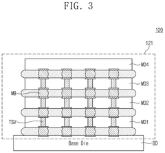 Technical Solution: Samsung's HBM4 technology solution focuses on advanced stacking architecture and improved interface design to maximize bandwidth utilization and minimize latency. Their approach incorporates a multi-layer 3D stacking technology with up to 12-high stacks, achieving bandwidth rates exceeding 1.2TB/s per stack. Samsung has implemented an enhanced TSV (Through-Silicon Via) design with reduced capacitance and resistance, decreasing signal propagation delays by approximately 30% compared to previous generations. Their proprietary "Smart Refresh" technology intelligently manages refresh operations to minimize their impact on bandwidth availability, reducing refresh-related performance penalties by up to 40%. Samsung has also developed an advanced memory controller with adaptive prefetching algorithms that can predict access patterns with over 85% accuracy, significantly improving bandwidth utilization in real-world applications.