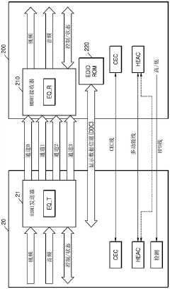Technical Solution: Samsung has implemented an advanced HDMI 2.1a FRL Link Training system in their display and source devices, with particular emphasis on optimizing the equalization process. Their approach utilizes a proprietary adaptive equalization algorithm that dynamically adjusts pre-emphasis and de-emphasis levels based on real-time channel characteristics assessment. Samsung's implementation features a multi-stage LTP pattern recognition system that can identify optimal signal parameters within fewer training cycles than standard implementations. For error recovery, Samsung employs a hierarchical approach where minor errors trigger localized retraining while maintaining the connection, while major errors initiate a complete link retraining process. Their system includes specialized hardware accelerators for pattern generation and analysis, enabling faster link establishment especially in challenging environments with longer cable runs or potential interference sources. Samsung has also developed cable-specific optimization profiles that can be automatically selected based on detected cable characteristics.