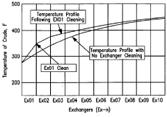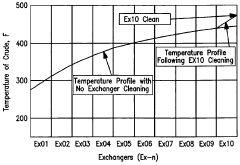 Technical Solution: ExxonMobil has developed comprehensive fouling prediction models that integrate machine learning algorithms with traditional heat transfer principles. Their approach combines real-time monitoring systems with predictive analytics to forecast fouling rates in various heat exchanger configurations. The company utilizes proprietary HEAT (Heat Exchanger Analysis Technology) software that incorporates fluid dynamics simulations to predict deposit formation patterns based on operating conditions, fluid compositions, and surface characteristics. ExxonMobil's mitigation strategy employs a multi-faceted approach including specialized chemical treatments that modify surface properties to reduce adhesion of foulants, optimized flow distribution designs to minimize dead zones, and automated cleaning systems that can be deployed without full system shutdown. Their technology also includes advanced materials with anti-fouling properties for critical heat exchange surfaces.