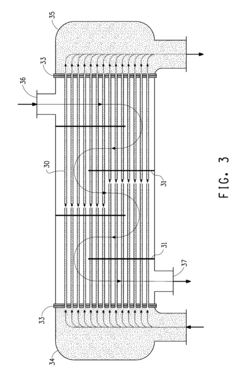 Technical Solution: ExxonMobil has developed proprietary FIBER FILM® technology for heat exchanger surface coating that creates a thin, hydrophobic barrier on metal surfaces. This technology utilizes fluoropolymer-based coatings that significantly reduce fouling by preventing the adhesion of deposits on heat transfer surfaces. The coating creates a low surface energy interface that inhibits the attachment of particulates, scale, and biological matter. ExxonMobil's approach combines surface chemistry modifications with engineered surface textures to optimize both the chemical and physical aspects of fouling prevention. Their research has demonstrated fouling reduction rates of up to 90% in certain applications, particularly in crude oil processing units where asphaltene and wax deposition are common fouling mechanisms. The company has implemented this technology across multiple refineries globally, with documented energy savings of 15-30% and extended run times between cleaning cycles.